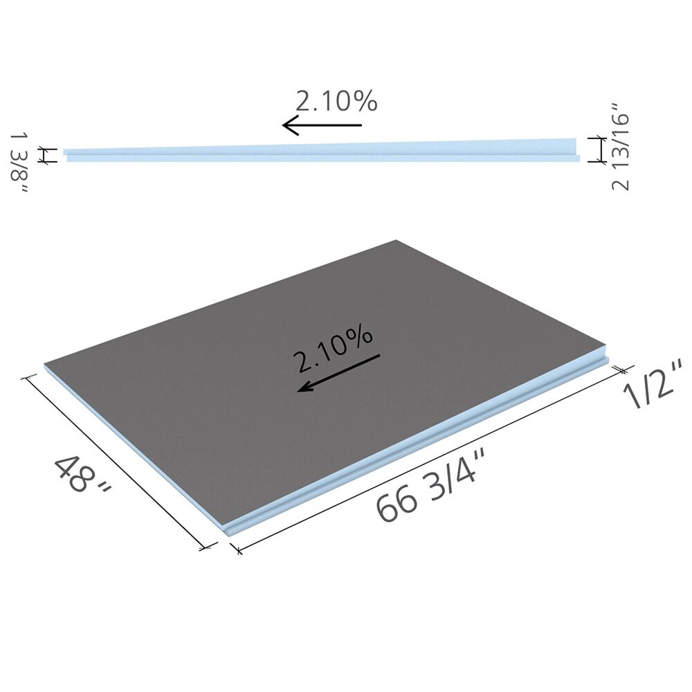 You will need to select a shower base that covers twice the length of the longest dimensions along each axis. This will ensure that the shower base will cover the entire shower area and, if needed, can be trimmed on-site to position the integrated wedi drain over the 2-inch waste pipe in the subfloor.